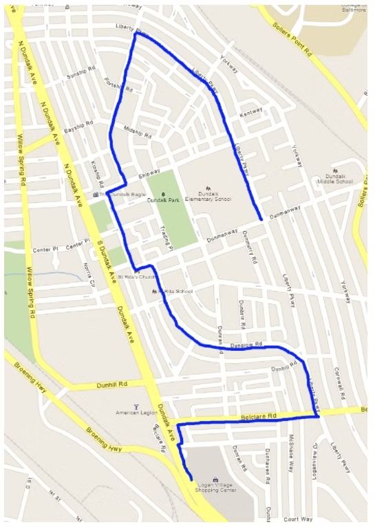 4. Make a left on Dundalk Avenue (travel 1.6 miles).